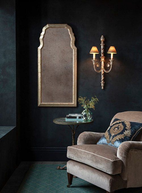 Hanover wall light in Antiqued silver with Arcus mirror, Brooke chair and Rossini cushion