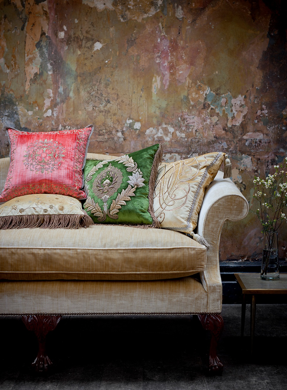 Our designer cushions have a lead time of up to eight weeks. Custom made to order, each fully hand embroidered cushion is made to the most remarkable standard in our luxurious fabric.