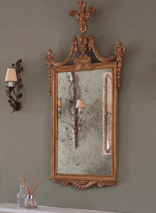 This Regency style decorative mirror is surmounted by the Prince of Wales cresting, with elegantly carved swags and classical carved detailing. Carved in our artisan Italian workshop, our ornate mirrors are hand gilded in a beautiful range of finishes. Pair with our decorative wall lights for a luxurious look.