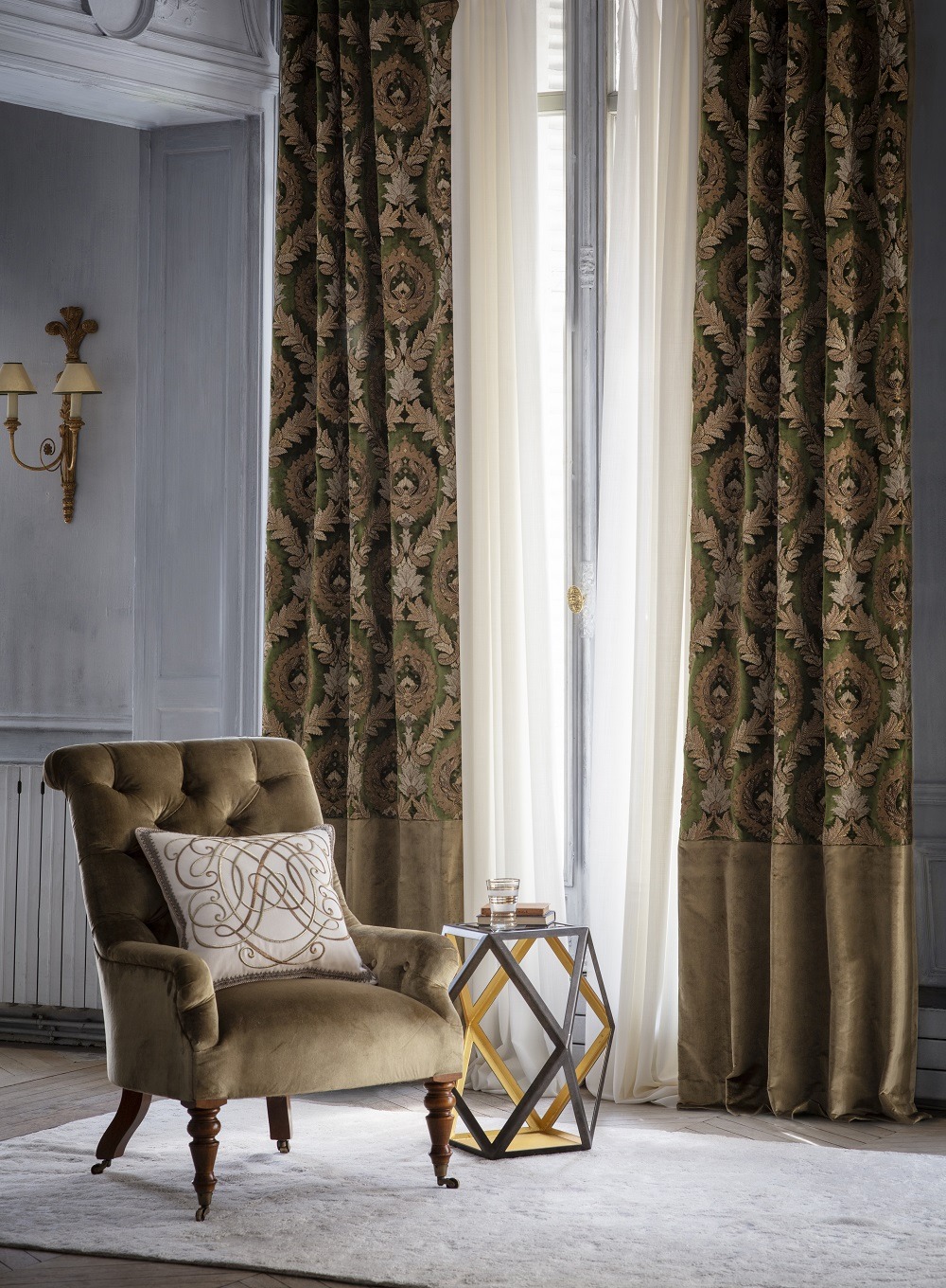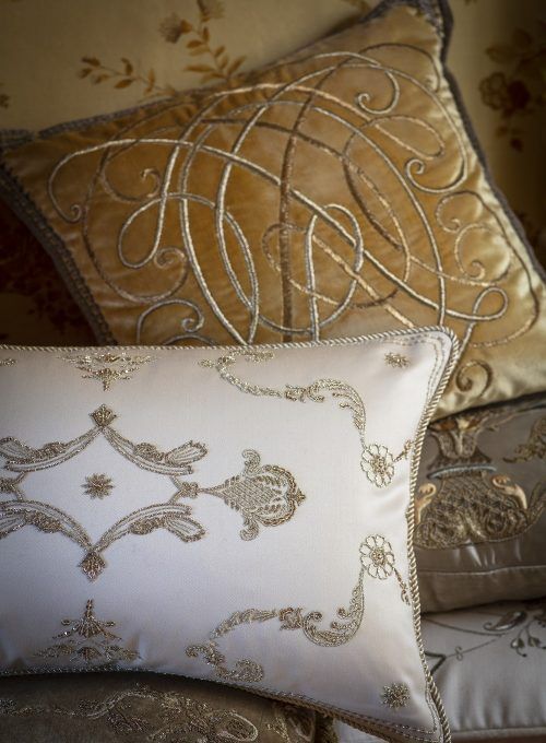 Our bespoke embroidery can be used to embellish any fabric for various interior applications such as curtains, cushions, headboards, chair backs and wall panels.