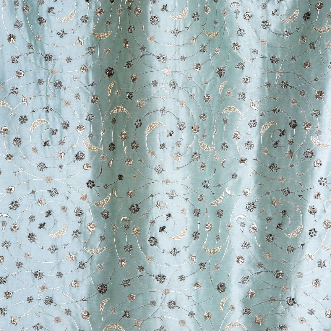 Inspired by the subtle designs found on Persian ceramics, Boccaccio is a botanical style embroidery design consisting of concentric swirls of delicately embroidered flowers and leaves.