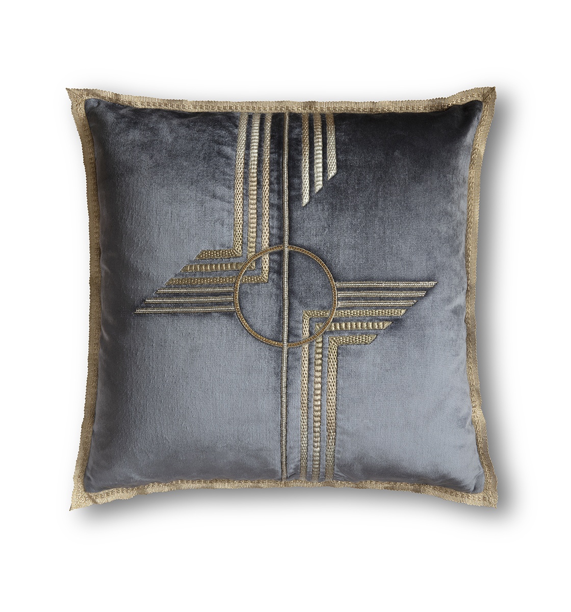 A luxurious, striking Art Deco design, Earhart consists of bold geometric shapes and lines hand embroidered with metallic threads and fine embellishments.