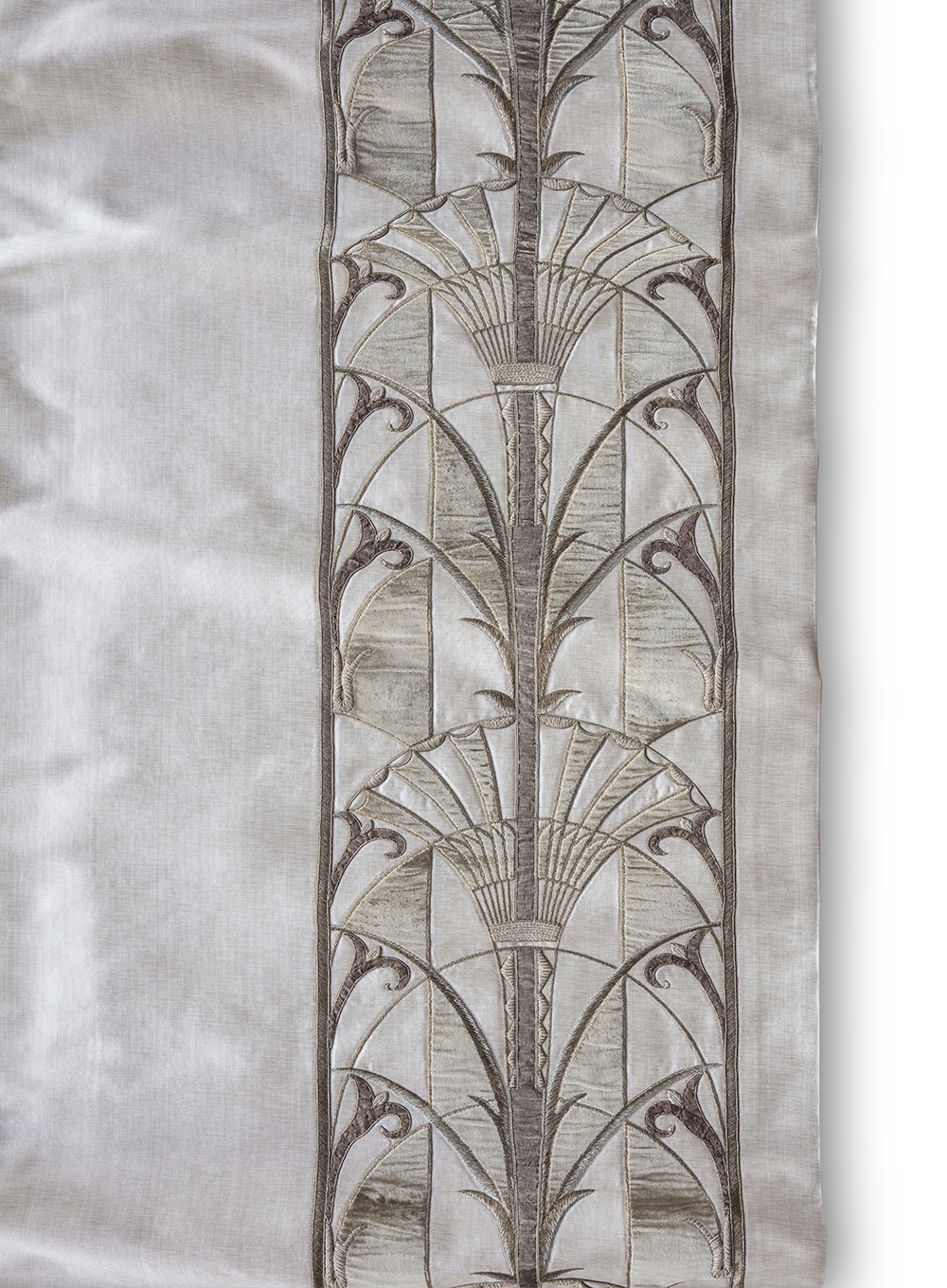 Our bespoke embroidery can be used to embellish any fabric for various interior applications such as curtains, cushions, headboards, chair backs and wall panels.