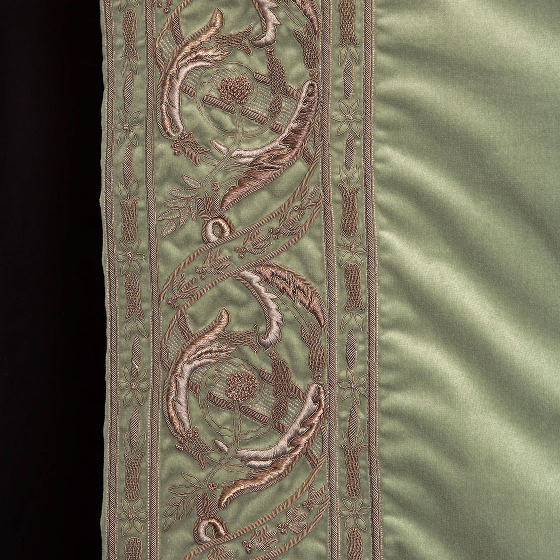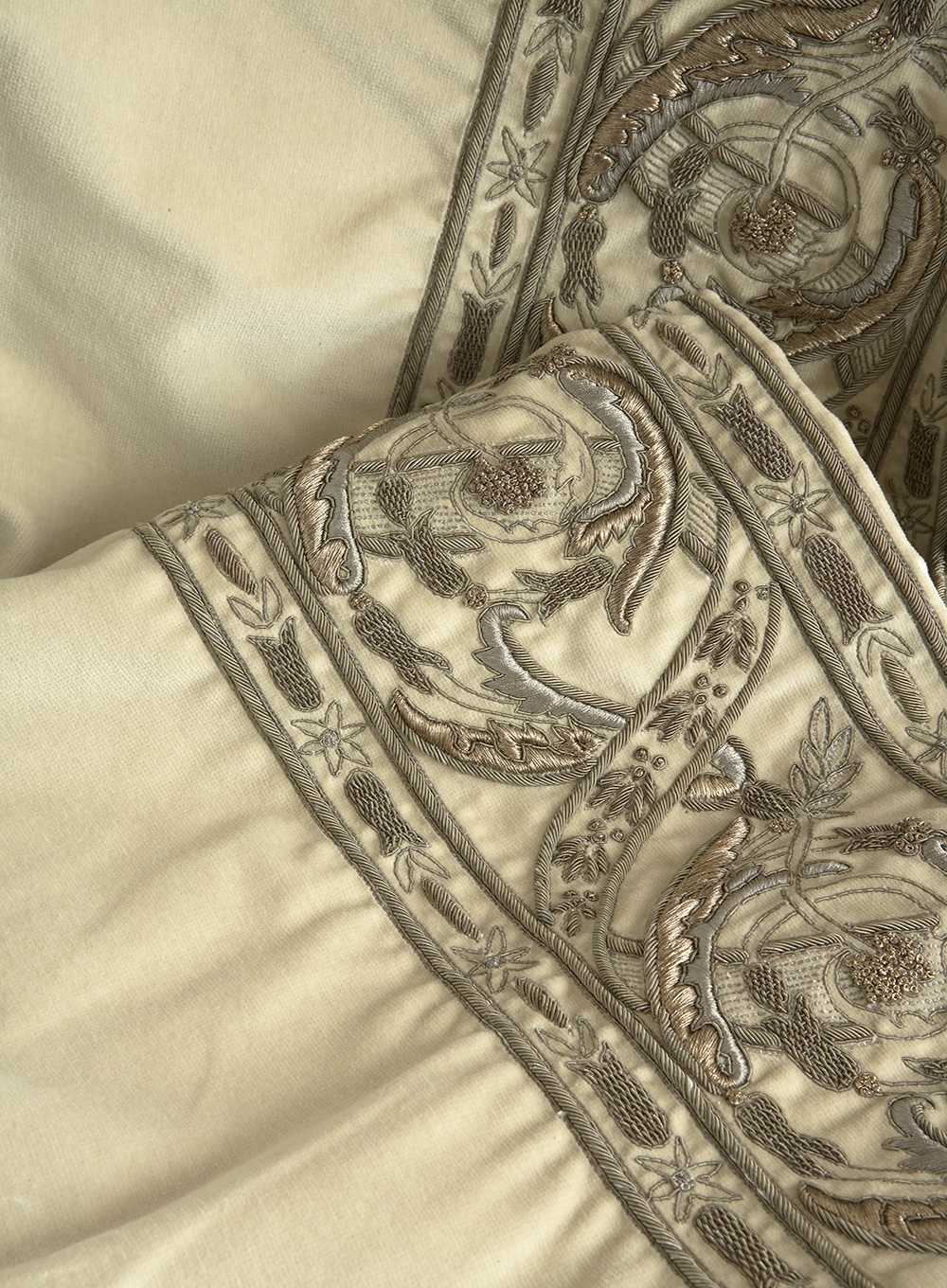 Our bespoke embroidery can be used to embellish any fabric for various interior applications such as curtains, cushions, headboards, chair backs and wall panels.
