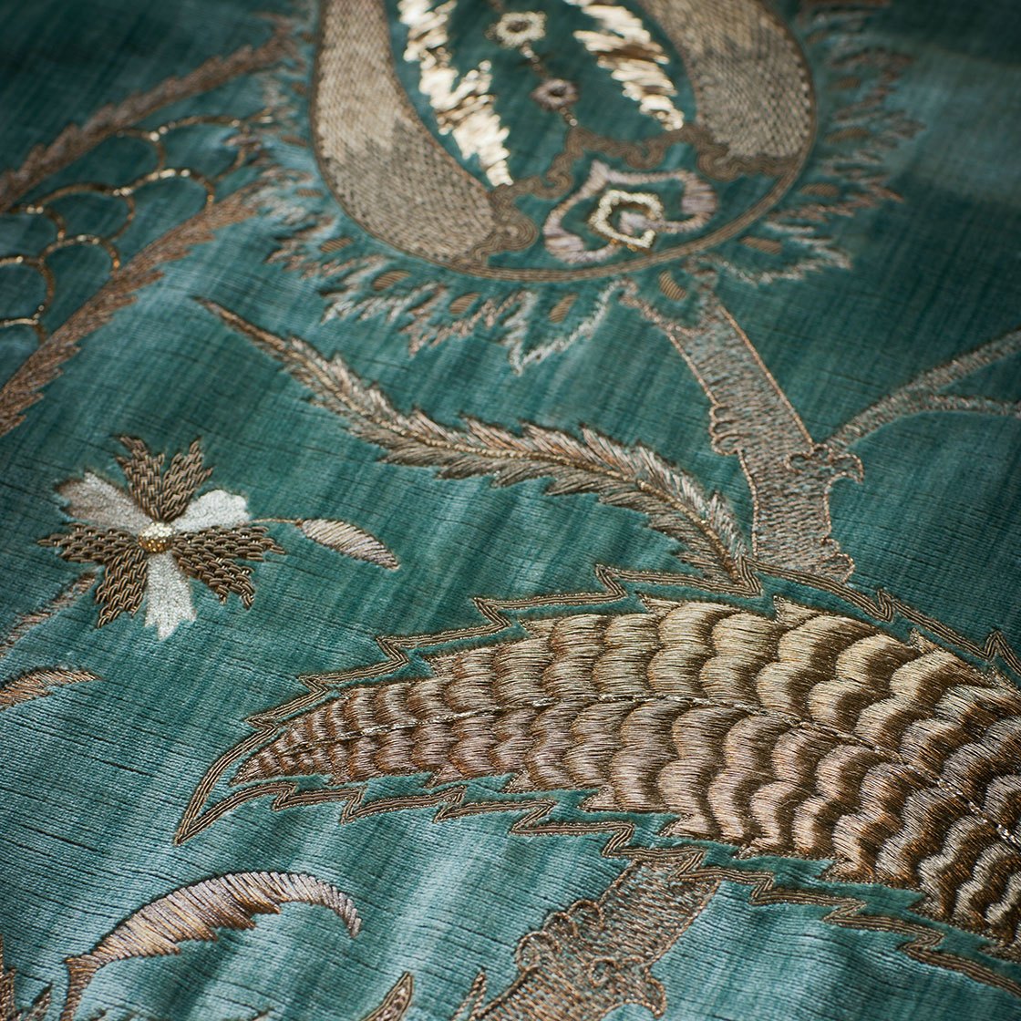 Our bespoke embroidery can be used to embellish any fabric for various interior applications such as curtains, cushions, headboards, chair backs and wall panels.