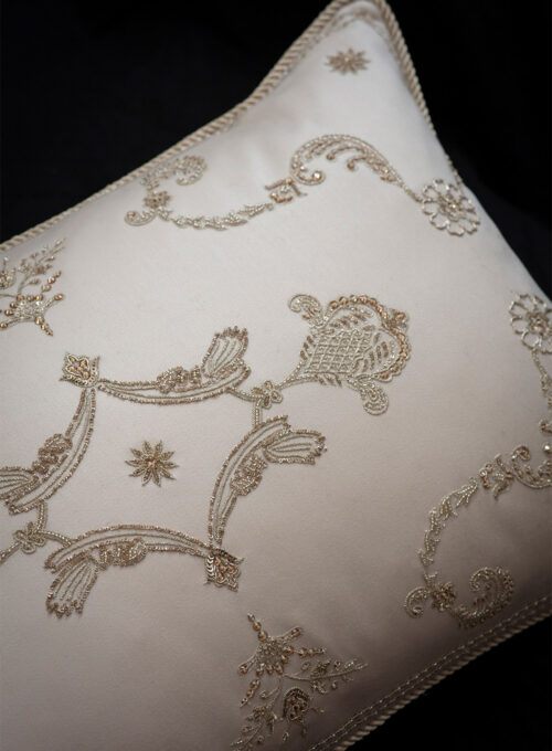 Our bespoke embroidery can be used to embellish any fabric for various interior applications such as curtains, cushions, headboards, chair backs and wall panels.