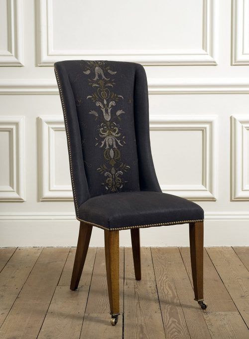 The Kingsley side chair is a signature Beaumont & Fletcher design, with its tall, gently arching back and tapered legs giving a classic English feel. Our upholstered dining chairs are handmade in our English workshop and come as both carver or side chairs.