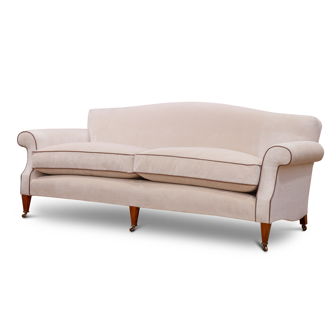 The Boswell sofa is true to its Georgian heritage. Elegantly styled with graceful proportions, it has a low camel back and scrolling arms. Large 3 seater with two seat cushions, it is sold as seen in our beautiful Troilus – Parchment.